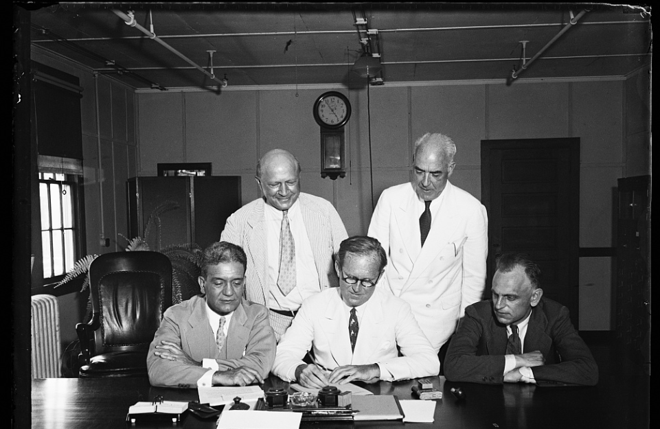Seated, left to right: Ferdinand Pecora, Joseph P. Kennedy, James M. Landis. Standing, left to right: George C. Matthews, Robert F. Healy.